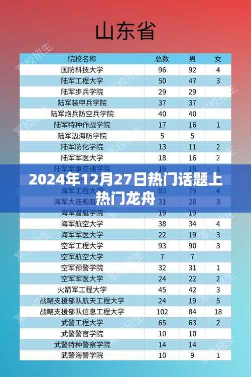 隨著時代的發(fā)展,傳統(tǒng)文化逐漸煥發(fā)出新的生機與活力,龍舟文化作為中華傳統(tǒng)文化的重要組成部分,不僅在端午節(jié)期間備受矚目,而且在全年其他時間段也持續(xù)受到關(guān)注,本文將圍繞“熱門話題上熱門龍舟”這一主題展開,探討在即將到來的2024年12月27日,龍舟文化如何成為熱門話題,并引領(lǐng)社會熱潮。