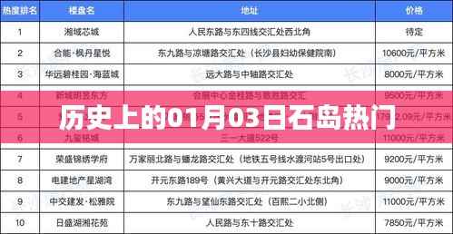 石島,一個(gè)充滿歷史底蘊(yùn)的地方,隨著時(shí)間的流逝,這里發(fā)生了許多重要的事件,而每年的1月3日,更是石島歷史上的熱門日期,這一天所發(fā)生的事件往往對(duì)石島乃至周邊地區(qū)產(chǎn)生深遠(yuǎn)影響,本文將帶領(lǐng)讀者一起探尋歷史上的1月3日石島所發(fā)生那些令人矚目的事件。