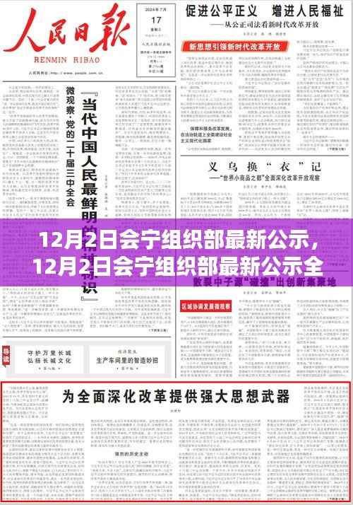 1、信息全面:“12月2日會(huì)寧組織部最新公示”內(nèi)容涵蓋了各類組織部門的重要信息,包括人事任免、工作動(dòng)態(tài)、政策解讀等,信息全面,方便公眾了解。