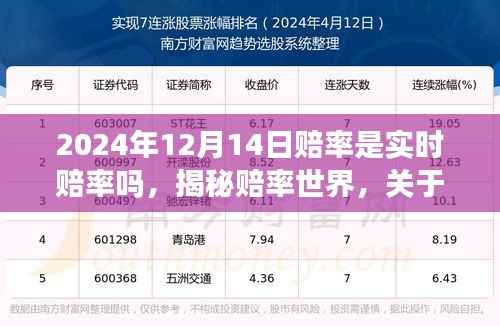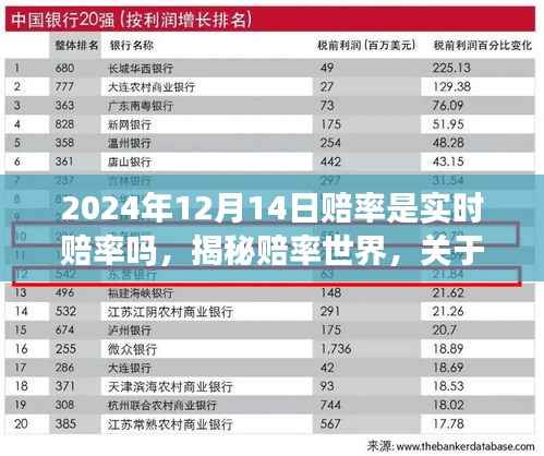 在競(jìng)技體育日益盛行的今天,賠率成為了廣大體育愛(ài)好者和投資者關(guān)注的焦點(diǎn),隨著信息技術(shù)的飛速發(fā)展,人們對(duì)于信息的獲取和處理速度要求越來(lái)越高,特別是在體育賽事領(lǐng)域,2024年12月14日的賠率是否是實(shí)時(shí)賠率”這一問(wèn)題,便是眾多體育迷和投資者心中的熱門(mén)話(huà)題,本文將圍繞這一主題,從正式、輕松和科普的角度展開(kāi)討論。